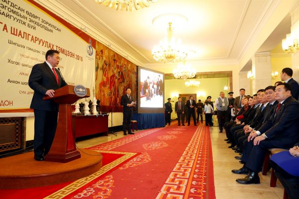 Тэмцээнийг нээж Монгол Улсын Их Хурлын дарга М.Энхболд үг хэлэв.