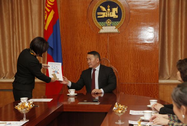 Ардчилсан Эмэгтэйчүүдийн Холбоо болон иргэний нийгмийн байгууллагууд хамтран “Цахим халдлагаас хүүхдээ хамгаалъя” нэг сарын аяныг эхлүүлээд байгаагаа Монгол Улсын Ерөнхийлөгчид танилцуулж, удирдамжаа гардууллаа.