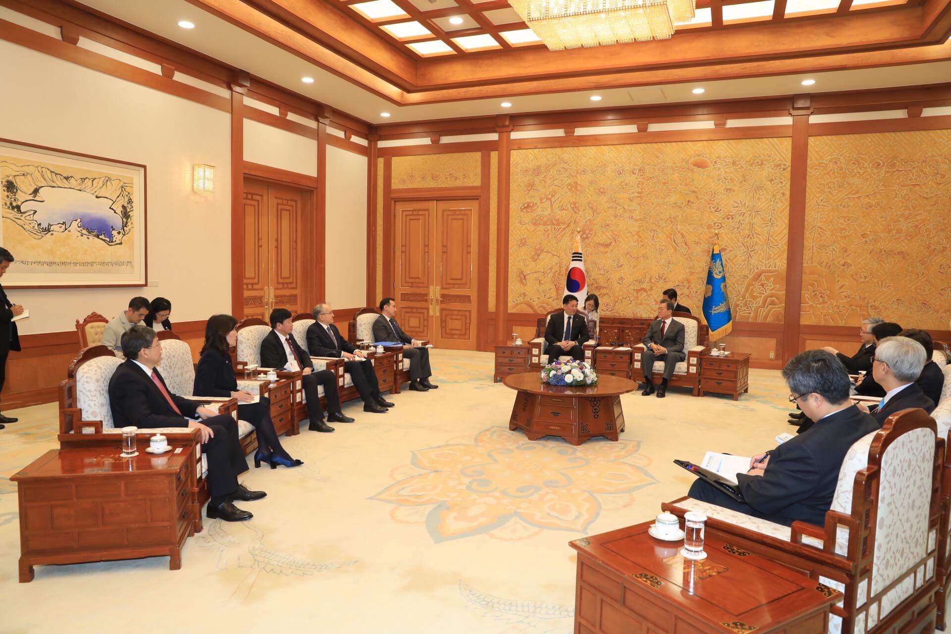 Тухайлбал, Гадаад харилцааны сайд Д.Цогтбаатар, БОАЖ-ын сайд Н.Цэрэнбат, БСШУС-ын сайд Ц.Цогзолмаа, Сангийн сайд Ч.Хүрэлбаатар, ХНХ-ын сайд С.Чинзориг, Зам тээвэр, хөгжлийн сайд Ж.Бат-Эрдэнэ, Уул уурхай, хүнд үйлдвэрийн сайд Д.Сумъяабазар нар дагаж яваа юм байна. Эндээс шаардлагатай гэж үзвэл Засгийн газрын хуралдааныг Сөүлд хийсэн ч болохоор харагдаж байна.