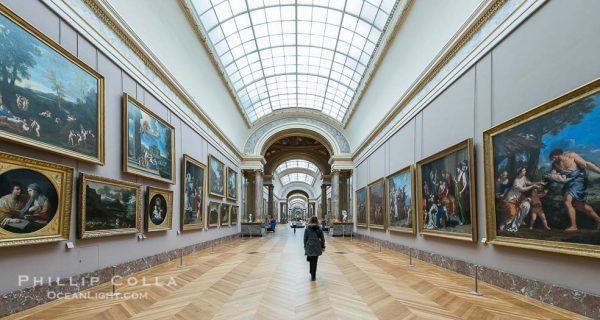 Өдгөө Луврын музейд XIII зууны сүүлээс XIX зууны дунд хүртэлх европын зураачдын зурсан 6000 гаруй зураг байдаг. Урлагийн бүтээл зураг цуглуулах үйл ажиллагаа нь 1791 оноос эхэлсэн бөгөөд Луврын уран зургийн хаадуудын цуглуулга, язгууртан гэр бүлүүдийн цуглуулгууд музейн эх үндсийг нь тавьсан юм. XIV Людовикын нас барсны дараа 1715 онд Лувр болон Версальд 2500 зурагтай байсан гэдэг.