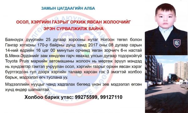 6 настай хүүхдийг мөргөж гэмтээгээд орхиж явсан хэргийг харсан гэх гурван эмэгтэй холбоо барьж, мэдээлэл өгч туслана уу. Мөн хэргийн талаар үнэн зөв мэдээлэл өгсөн хүнд өндөр шагналтай.