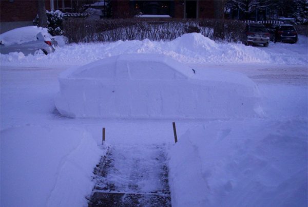Канадын Монтрейл хотын иргэн 33 настай Саймон Лапрись цас цэвэрлэгч нараар нөхөрсөгөөр хошигнох зорилготойгоор гадаах зам дээрээ цасан машин хийжээ. Гэтэл хийсэн цасан машин нь цас цэвэрлэгчдээс илүү цагдаа нарын анхаарлыг татжээ. Цагдаа нар цасан машин дээр “Шөнөжин эргүүл хийх ажилтай биднийг та хөгжөөж чадлаа” гэсэн утга бүхий хуудас үлдээсэн байна.