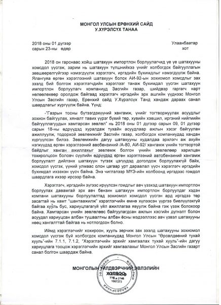 Шатахуун импортлогчдод шаардлага хүргүүлснээр үнээ нэмж, хомсдол үүсгээд байсан асуудал зогссон гэж Засгийн газар болох ШӨТХГ-аас мэдээлж байсан. Тухайлбал, ШӨТХГ-ын дарга Б.Лхагва “ААН-үүдэд үнээ өсгөх, зохиомлоор хомсдол үүсгэх эрх байхгүй. Төр хувийн хэвшлийн хамтарсан зөвлөл үнийн асуудлаар шийдвэр гаргаагүй байхад шатахууны үнэ тарифтаа өөрчлөлт оруулсан, хомсдол үүсгэсэн ААН-үүдтэй эвлэрч ажиллаж чадахгүй” гэж мэдэгдэж байсан. Засгийн газар ч шатахуун импортлогчдод хатуухан сануулга өгсөн гэж мэдэгдэж байлаа.