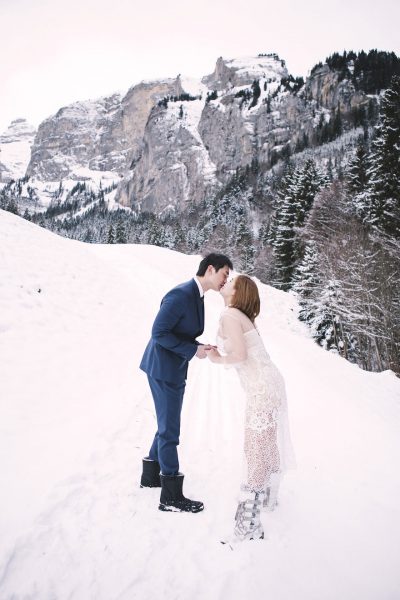 Өвөрмөц байдлаар гэр бүл болохыг хүссэн Хонконгийн залуу хос Швейцарийн хэд хэдэн хэсэгт бал сараа тэмдэглэх зууртаа хуримын зургаа цаст Альпийн нуруунд авахуулжээ. Тэд цасан дунд дурсамжтай зургууд авахуулснаа ихэд олзуурхсан байна. Сүйт бүсгүйн нэрийг орчуулбал Цасан цагаан гэсэн утгатай. Сүйт залуу ирээдүйн эхнэртэй романтик бөгөөд утга учир бүхий бэлэг барихыг хүссэн аж. Далайн төвшнөөс дээш 1920 метрийн өндөрт гарсан хосыг очиход угтаа цас ороогүй байсан агаад “Бурхан минь бид цастай зураг авахуулмаар байна” гэж залбирахад өглөө нь цас сэвсийтэл орсон байжээ. Ингээд шинэхэн цас орж, нар ээсэн өдөр ид шидийн мэт байсан байна.