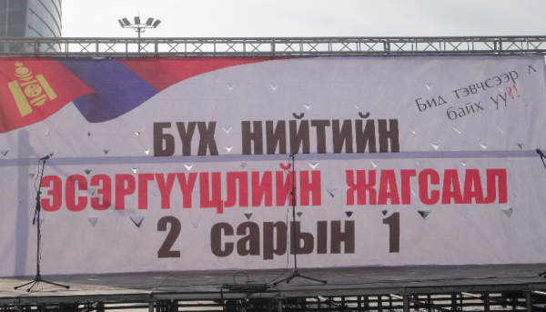 Ардчилсан намаас бүх нийтийн эсэргүүцлийн жагсаалийг Сүхбаатрын талбайд зохион байгуулж байна. Жагсаалд 21 аймаг, есөн дүүргийн АН-ын гишүүд, дэмжигчид болон төрийн үйл ажиллагааг эсэргүүцэгч иргэд оролцож байна. Жагсаалд оролцож байгаа иргэдийн байр суурийг хүргэе.