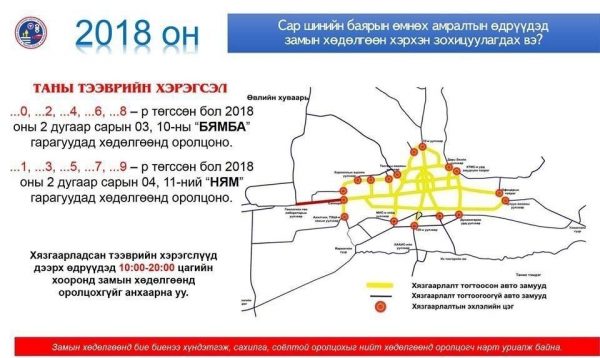 Сар шинийн баяртай холбогдуулан нийслэлийн замын хөдөлгөөнд зохицуулалт хийгдэж байгаа билээ.