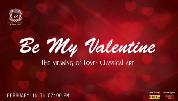 Гэгээн хайрын баяр УДБЭТ-т “BE MY VALENTINE” болон В.Красногоров “Би ч гэсэн жаргамаар байна” уянгын драмын жүжиг, Улсын Филармонийн тайзнаа “I love you” концертууд тоглогдох гэж байна.