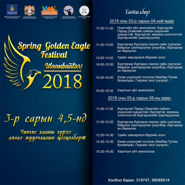 Энэ жил нийслэлийн Аялал жуулчлалын газар, Улаанбаатар аялал жуулчлалын холбоо болон “Монголын бүргэдчид холбоо” хамтран “Хаврын бүргэдийн баяр” арга хэмжээг ирэх сарын 4-5-ны өдрүүдэд “Чингис Хааны Хүрээ” жуулчны баазад зохион байгуулах гэж байна.