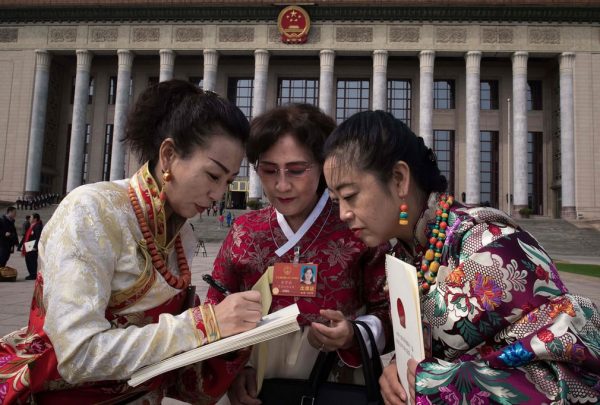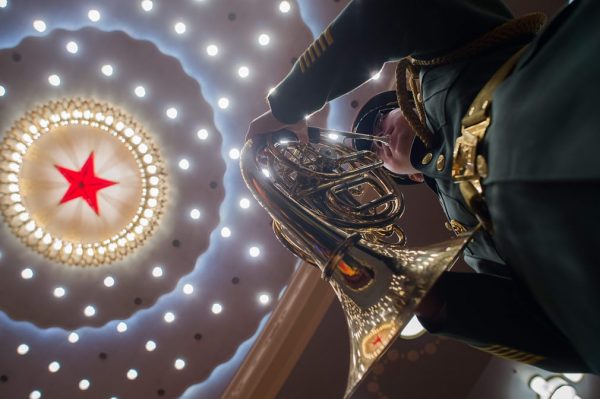 Цэргийн чуулгынхан Бүх Хятадын Ардын Төлөөлөгчдийн Их Хурлын чуулганы хаалтыг хийж төрийн дуулал эгшиглүүлж байна.