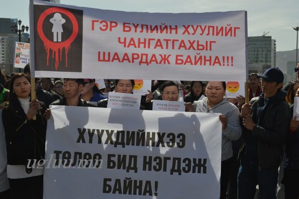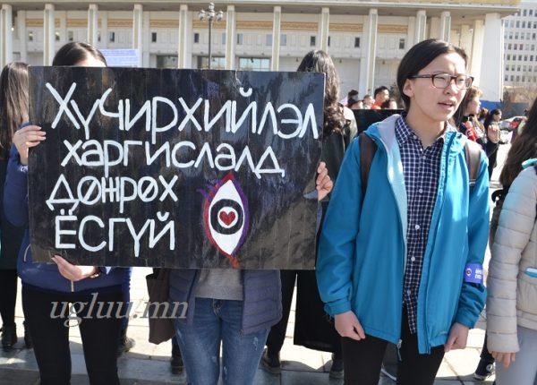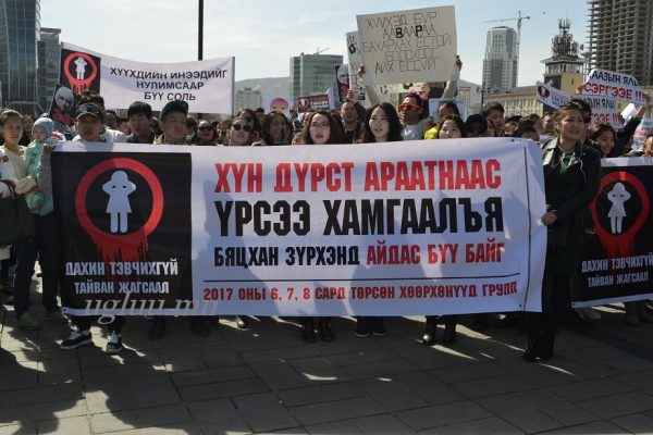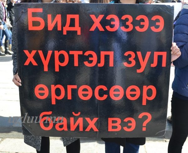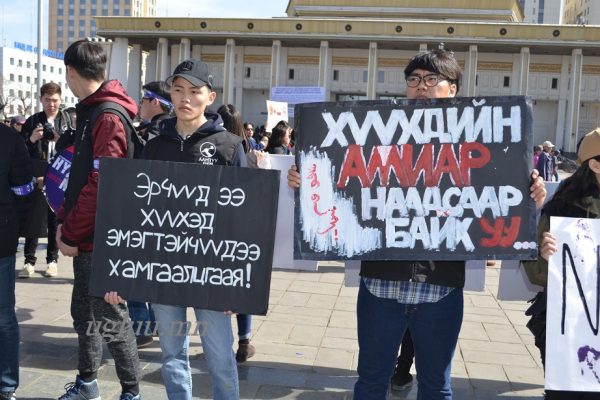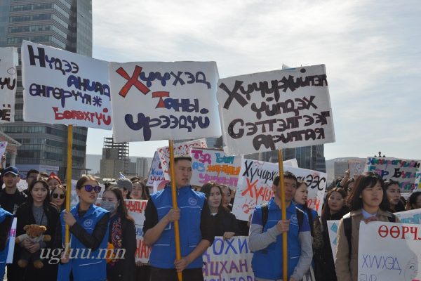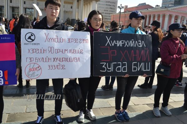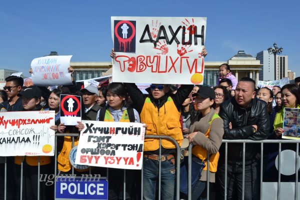 “ДАХИН ТЭВЧИХГҮЙ” жагсаалд оролцогчид хүүхэд хүчирхийлсэн этгээдэд торгууль биш ял оноож, энэ төрлийн гэмт хэргийг өршөөлийн хуульд хамруулахгүй байх ёстой гэсэн байр сууриа илэрхийллээ.