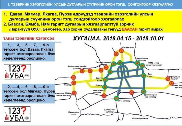 Нийслэлийн хаврын бүтээн байгуулалтын ажил эхлэх гэж байгаатай холбогдуулан авто машины дугаарын хязгаарлалтыг 2 өдөр болгох асуудлаар санал асуулга явуулж байна.