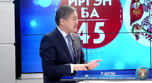 НИТХ-ын төлөөлөгч, Улаанбаатар чөлөөт бүс байгуулах ажлыг судлах ажлын хэсгийн ахлагч Р.Дагвын оролцсон UBS телевизийн “Иргэн ба 45” нэвтрүүлгийг хүргэж байна.
