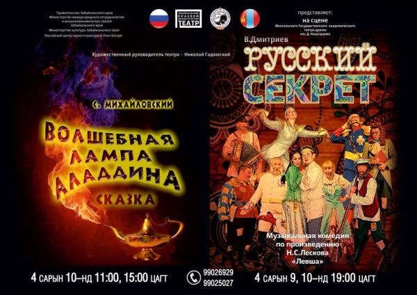 Чита хотын Драмын театрын уран бүтээлчид бяцхан үзэгчиддээ зориулсан “Аладдины шидэт дэнлүү” үлгэрийн жүжиг, 12 наснаас дээш сурагчдад зориулсан “Оросын гайхамшиг” жүжгүүдийг орос хэл дээр орчуулаггүй тоглогдоно. Ингэснээр уг хэлийг сонирхон судалж буй оюутан сурагчдад хэлний мэдлэгээ тэлэх боломж олгож байна гэж хэллээ.