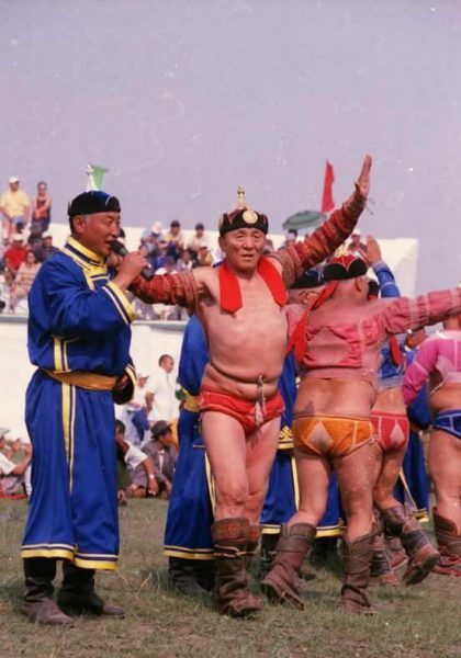 Бөхийн удамт монголчуудын бахархал болсон Даяар дуурсагдах далай даян дархан аварга, Монгол Улсын Хөдөлмөрийн баатар, Мехикогийн олимпийн мөнгөн медальт, Жигжидийн Мөнхбатынд өнжсөн юм. Гэрийн эзэгтэй “Манайд та нар орой болтол байх юм уу. Охин хүүхэдтэйгээ эмнэлэгт хэвтчихсэн гэнэ. Нимгэн хувцастай явуулж байгаад дааруулаад ханиад хүргэчихсэн бололтой. Уг нь амралтын өдрөөр ирээд хөгшин бид хоёрт хоол, цай хийж өгөөд явдаг юм. Энэ амралтын өдрөөр би энэ хүнд үйлчилж таарах нь. За та нар урдаа байгаа цайгаа уугаарай. Би одоохон шөл хийлээ”гээд гал тогооны өрөө рүүгээ яваад орлоо. Харин гэрийн эзэн бурхан тахилынхаа өөдөөс харсан буйдан дээр суучихаад надтай хуучилж гарлаа. Бидний яриа Эрдэнэсант сумын тухай байв. Өнөө жил манай нутагт өнтэй сайхан өвөл болж байгаа гэдгийг аварга ярьж байна. Ес эхлээд хүйтэрч, цас их ороод баларчихгүй бол дулаахан байгаа гэнэ. Мөөеө аварга саяхан төрж өссөн нутагтаа очоод иржээ. Ж.Мөнхбат аваргынх 50 мянгатын гурван өрөө байрандаа олон жил амьдарч байгаа гэнэ. Том өрөөний ханаар жаазтай зураг дүүрэн өлгөөтэй. Аваргын засуулынхаа мөрийг түшээд бага зэрэг ярвайчихсан дэвж байгаа зурагнаас эхлээд зодог шуудгаа бүсэлчихсэн зураг гээд ёстой ид барилдаж, олныг шуугиулж явсан цэл залуухан үеийн зураг олон байна. Мөн аваргын отгон хүү Япон улсын мэргэжлийн сумо бөхийн 69 дэх Их аварга Хакухо М.Даваажаргалын зургууд өлгөөтэй байх. Мөн Японы эзэн хааны өгсөн сэлэм бурхны хоёр талын хананд байршжээ.