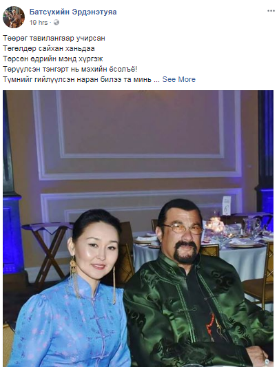 Холливудын нэрт жүжигчин Стивен Сигалын төрсөн өдөр өчигдөр 2018 /04.10/- нд тохиосон юм. Тэгвэл түүний гэргий Б.Эрдэнэтуяа хайртай ханьдаа цахим хуудсаар дамжуулан төрсөн өдрийн мэндчилгээ дэвшүүлжээ.