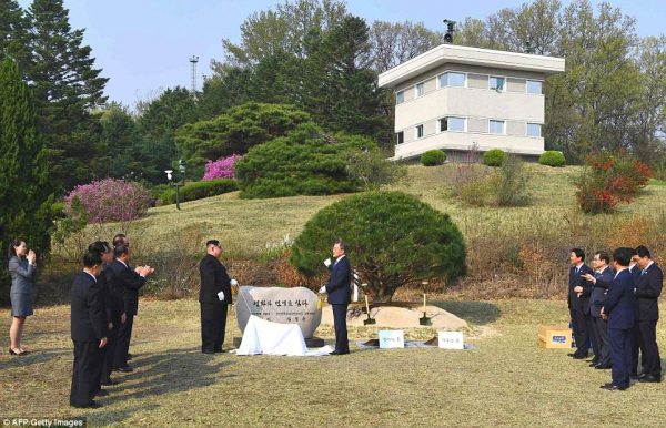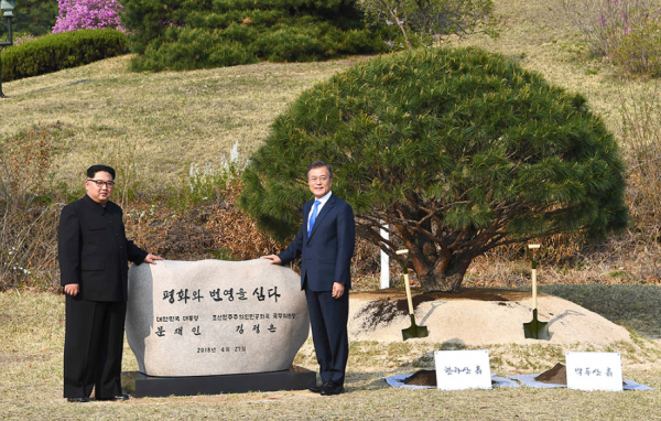 Мөн Хоёр Солонгосын удирдагч нарын дээд хэмжээний уулзалт “Энх тайван, шинэ эхлэл” уриан дор явагдаж Панмунжомд дахь цэцэрлэгт хүрээлэнд хамт мод тарив.
