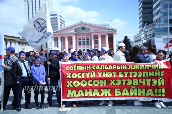 Монголын Үйлдвэрчний Эвлэлийн Холбооноос төрийн албан хаагчдын цалин, хөлсийг нэмэх, хөдөлмөрийн хөлсний доод хэмжээг шинэчлэн тогтоохыг Засгийн газраас шаардаж улс орон даяар эсэргүүцлийн  тайван жагсаалыг зохион байгууллаа.