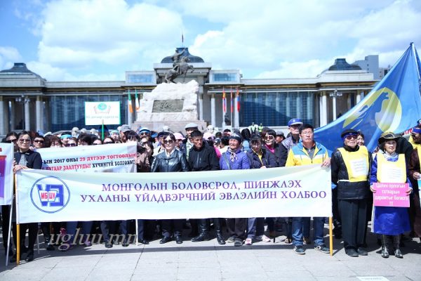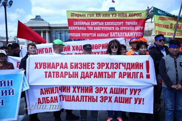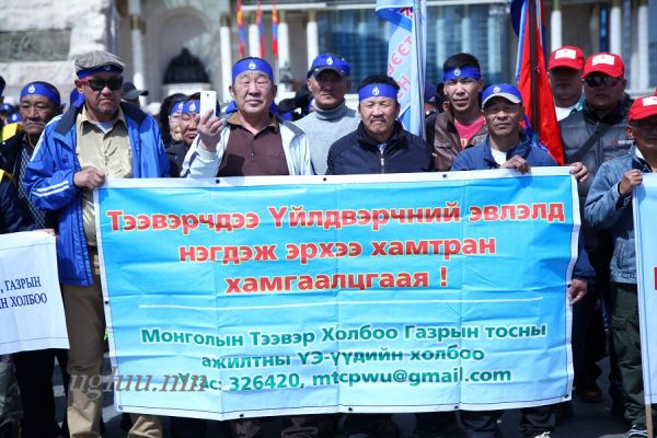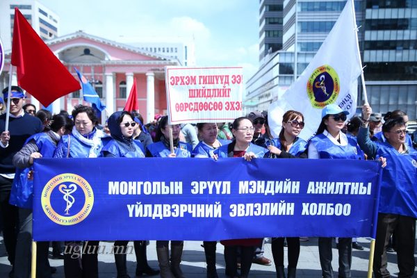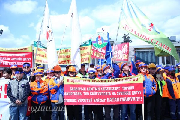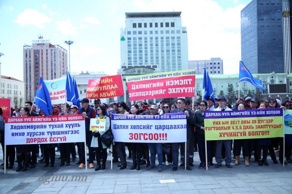 Өнөөдрийн Сүхбаатар жанжны талбайд зохион байгуулагдсан эсэргүүцлийн тайван жагсаалд Дархан-Уул аймгийн ҮЭХ, Төв аймгийн ҮЭХ, Монголын  Боловсрол, Шинжлэх Ухааны Үйлдвэрчний Эвлэлийн холбоо, Монголын Эрүүл Мэндийн Ажилчдын Үйлдвэрчний Эвлэлийн холбоо, Монголын Соёл Урлагийн Ажилтнууд үйлдвэрчний эвлэлийн байгууллагууд оролцлоо.