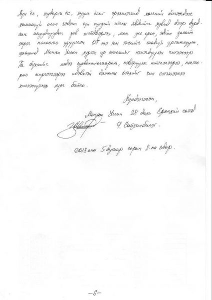 Монгол Улсын 28 дахь Ерөнхий сайд Ч.Сайханбилэг ШШГЕГ-ын харъя 461 дүгээр ангиас ил захидал бичлээ. Түүний ил захидлын бүрэн эхээр нь хүргэж байна.