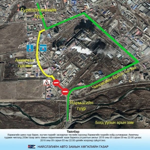 Яармагийн шинэ гүүр барих, хуучин гүүрийг засварлах төслийн хүрээнд Яармагийн гүүрийн хойд уулзвараас Ажилчны гудамж чиглэлийн 250м газарт барилга угсралтын ажил хийгдэнэ. Иймээс 2018 оны 05 сарын 09-ний 22:00 цагаас 2018 оны 09 сарын 03-ны 22:00 цаг хүртэл авто замын хөдөлгөөнийг хязгаарлахаар боллоо. Иймээс жолооч нар чиглэлээ зөв сонгон хөдөлгөөнд оролцоно уу гэж Нийслэлийн авто замын газраас мэдээллээ.
