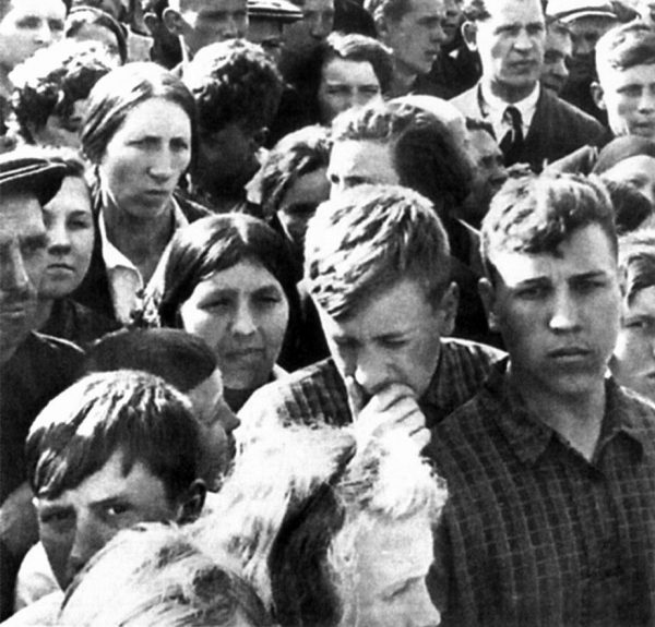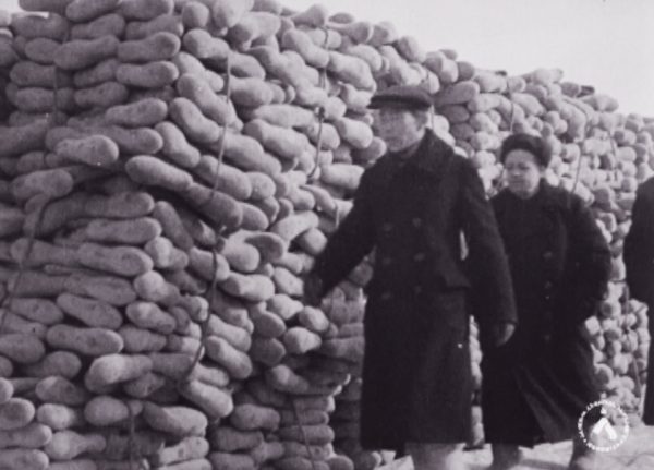 Фронтод илгээх бэлэглэлийн эд зүйлсийг Бэлэглэлийн төв комисст хүлээлгэн өгөхөөр дугаарлан зогсож байна. 1943 он. Г.К. Жуковын музей.