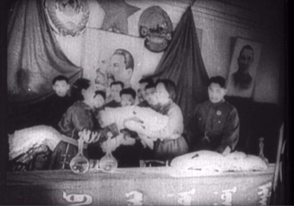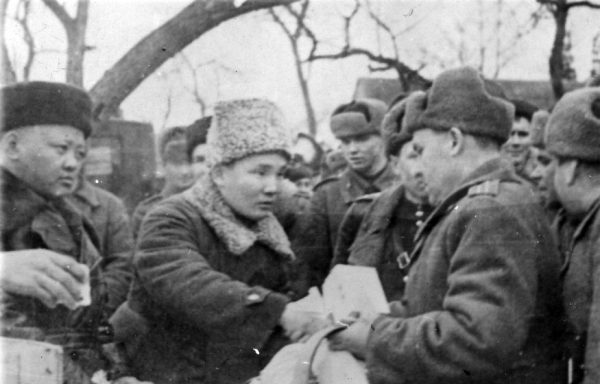 Ю.Цэдэнбал Зөвлөлтийн улаан армийн дайчдад бэлэг гардуулж байгаа нь. 1943 он. Кино, гэрэл зураг, дуу авианы баримтын архив.