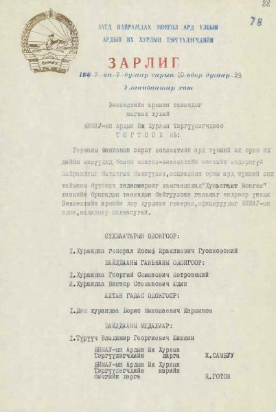 <<Хувьсгалт Монгол>> танкийн бригадын танкчдыг шагнах тухай БНМАУ-ын Ардын Их Хурлын тэргүүлэгчдийн 94 дүгээр зарлиг. 1967.07.10