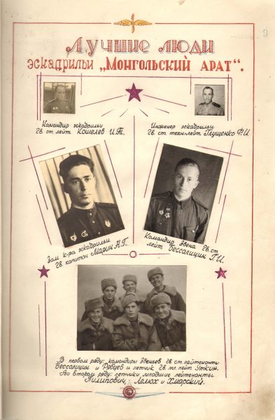 ”Монгол Ард” эскадрилийн шилдэг дайчид. 1943-1945 он. (Монголын ард түмэн: \”Бүхнийг фронтод, Бүхнийг ялалтын төлөө”. Архивын баримт, гэрэл зургийн цомогоос. УБ., 2015)