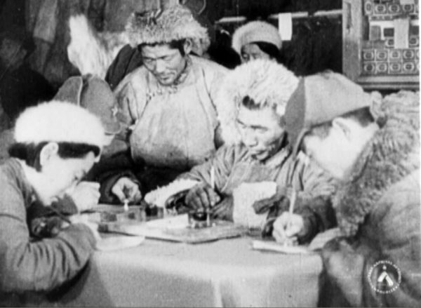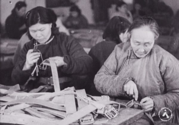 Ард түмнээс Бэлэглэлийн төв комисст ирүүлсэн хувийн бэлгийг бүртгэж байгаа нь. 1941 он. Кино, гэрэл зураг, дуу авианы баримтын архив.