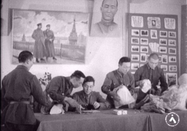 Фронтод илгээх бэлэглэлийн эд зүйлсийг бэлтгэж байгаа нь. 1943 он. Кино, гэрэл зураг, дуу авианы баримтын архив.