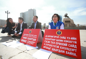 Монголын Эрүүл Мэндийн Үйлдвэрчний Эвлэлийн холбооны дарга Б.Мягмар” Эрүүл мэндийн салбарт хөдөлмөрийн мөлжлөг тогтоод байна. 2014 оны есдүгээр сараас хойш бидний цалин сохор зоосоор ч нэмэгдсэнгүй. Эрүүл мэндийн салбарынхан ажилтай ядуус болж хувираад байна. Гэтэл Эрүүл мэндийн сайд Д.Сарангэрэл Өвөрхангай аймагт ажиллах үеэрээ “Үйлдвэрчний эвлэлийн шаардлагаар цалин нэмэхгүй” гэж хэлсэн байна. Энэ бол Засгийн газрын 370 тоот тогтоолыг онц ноцтойгоор хэрэгжүүлэхээс татгалзаж байгаагаа харуулсан үйлдэл гэж үзэж байна. Тавдугаар сарын 1-нд Хөдөлмөр, нийгмийн хамгааллын сайд С.Чинзоригоор ахлуулсан цалин нэмэгдүүлэх гурван талт хэлэлцээр эхэлсэн. Засгийн газар ямар ч гаргалгагүйгээр орж ирсэн. Хэлэлцээр хийгээд л байдаг ямар ч үр дүн гардаггүй. Бүтэн дөрвөн жил биднийг хуурч байна. Тиймээс тэмцлийн хурц хэлбэр рүү орно.