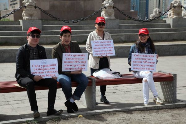 Хөдөлмөрийн мөлжлөгийг халж, шударга үнэлэмж тогтоохыг шаардсан ажил хаялтын өмнөх суултыг дэмжиж буйгаа илэрхийлэн БШУҮЭХ, Нэгдмэл ҮЭХ, ХХААБОҮЭХ, ААХҮЭХ, Соёл урлагийн салбарт ажиллагчдын төлөөллүүд суултад оролцлоо.