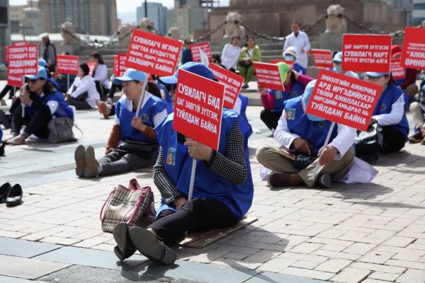 Монголын Эрүүл Мэндийн Үйлдвэрчний эвлэлийн холбооноос Засгийн Газраас эмч, эмнэлгийн ажилчдын цалин нэмэгдүүлэхийг шаардсан ажил хаялтын өмнөх суулт өнөөдөр Сүхбаатарын талбайд гурав дахь өдрөө үргэлжиллээ.