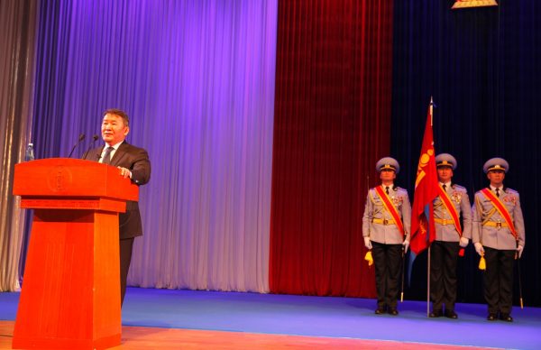 Монгол Улсын Ерөнхийлөгч Х.Баттулга Төрийн тусгай хамгаалалтын газрыг Цэргийн гавьяаны улаан тугийн одонгоор шагнасны дараа нийт алба хаагчдад зориулж үг хэлэв.