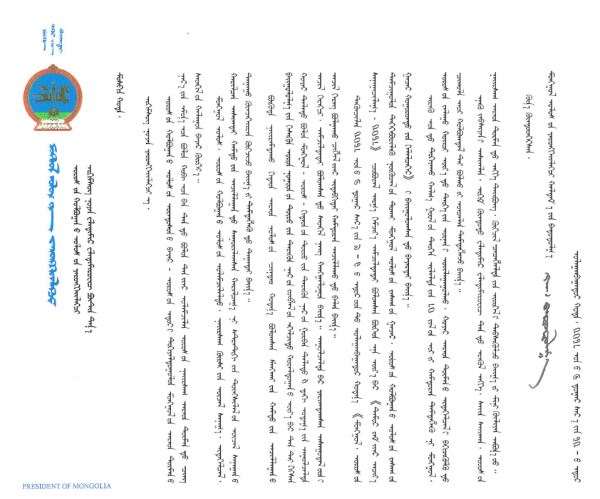 Энэхүү завшааныг ашиглан, Эрхэм хүндэт Владимир Владимирович Танд эрүүл энх, сайн сайхан, Оросын найрсаг ард түмэнд энх тайван, хөгжил цэцэглэлтийн ерөөлийг дэвшүүлж байгааг минь хүлээн авна уу” гэжээ.
