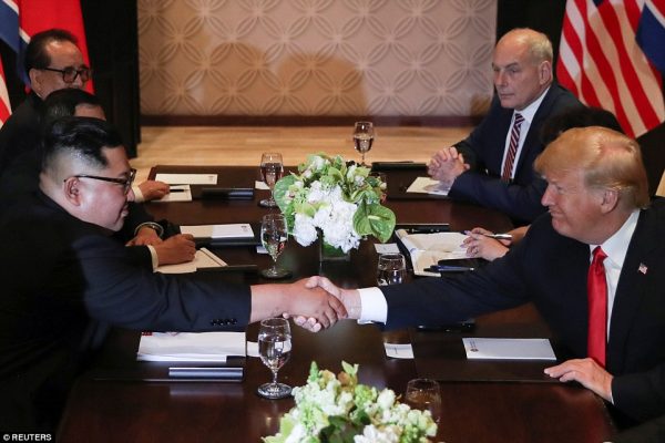 АНУ-ын Ерөнхийлөгч Д.Трамп болон Хойд Солонгосын удирдагч Ким Жон Ун нар түүхэн дээд хэмжээний өргөтгөсөн хуралдаанаа өндөрлөснийхөө дараа хамт үдийн зоог барилаа.