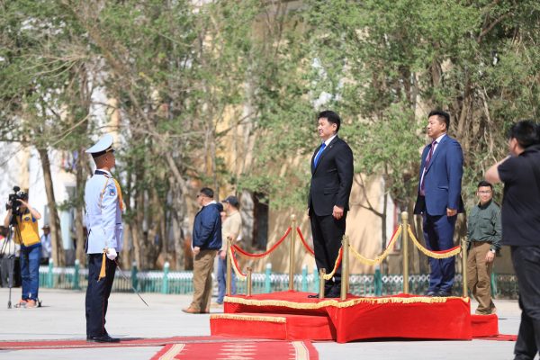 Монгол Улсын Ерөнхий сайдыг Дорноговь аймгийн Сайншанд сумын төв талбайд цэргийн хүрээний хүндэт харуул жагсан угтав.