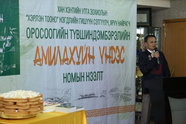 Хэнтийн аймгийн “Хэрлэн тоонот” утга зохиолын нэгдлийн гишүүн, сэтгүүлч, яруу найрагч Оросоогийн Түвшиндэмбэрэлийн “Амилахуйн үндэс” номын нээлт өчигдөр боллоо. Номын нээлтийн ёслолд яруу найрагч О.Түвшиндэмбэрэлийн уран бүтээлийн анд нөхөд, хамтран зүтгэгчид, гэр бүл, ах дүүс, нутаг усныхан, ангийн нөхөд нь хүрэлцэн ирж оролцсон юм. Монгол Улсын соёлын гавьяат зүтгэлтэн, нэрт орчуулагч, яруу найрагч Ж.Нэргүй, урлагийн гавьяат зүтгэлтэн Д.Мушгиа, Д.Нацагдоржийн нэрэмжит шагналт, утга зохиол судлаач, шүүмжлэгч, доктор, профессор Д.Хүү, зохиолч, Хонхэрээдийн Б.Энхбат тэргүүтэй зохиолч, яруу найрагчдын төлөөлөл, Хэнтий аймгийн “Хэрлэн тооно” утга зохиолын нэгдлийн уран бүтээлчид, мөн Хэнтий аймгийн нутгийн зөвлөлийн дарга, УИХ-ын гишүүн Л.Оюун-Эрдэнэ, УИХ-ын гишүүн Н.Учрал нар найрагчийн номын нээлтэд хүрэлцэн ирж хүндэтгэл үзүүлэв.