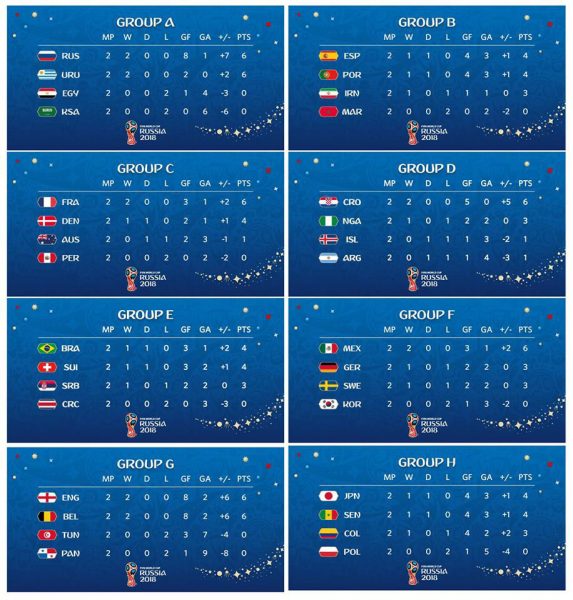 Дэлхийн аваргад хоёр дараалан түрүүлэх зорилго өвөртлөн ирсэн ч эхний тойрогт хожигдсон Германчууд Тони Кроссын ачаар хэсгээс гарах итгэл найдвартай үлдсэн бол Аргентин улсын шигшээ баг мөн адил хэсгээс гарах итгэл найдвартайгаар гуравдугаар тойргийн тоглолтуудаа хийнэ.  Хоёрдугаар тойргийн онцлох үйл явдал Английн шигшээ багийн ахлагч Харри Кэйн Панам улсын шигшээ багийн хаалганд гурван гоол оруулж мэргэн буучдын жагсаалтыг таван гоолтойгоор тэргүүлж эхлэв.