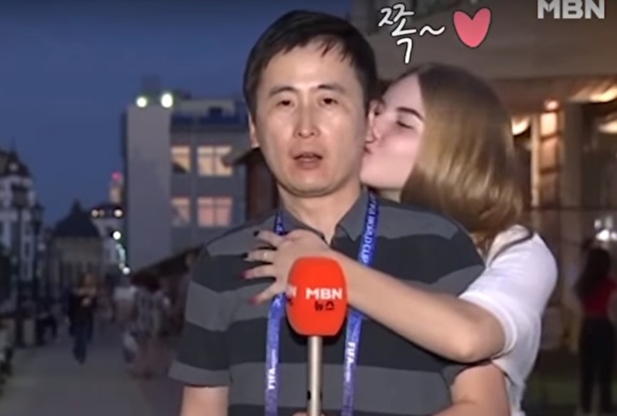 Хөл бөмбөгийн “ДАШТ-2018”-ын тоглолтын сурвалжлагыг шууд дамжуулан хүргэж байсан Өмнөд Солонгосын “MBN” телевизийн сэтгүүлч Кваль-Йель Квоныг хөгжөөн дэмжигч хоёр бүсгүй үнссэн дүрс бичлэг олон хүний анхаарлыг татжээ.