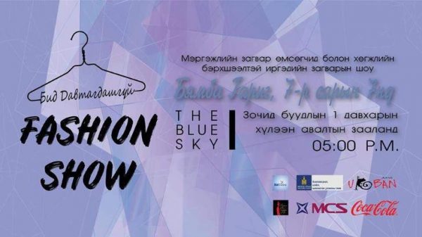 Хөгжлийн бэрхшээлтэй иргэдийн нийгмийн амьдралд оролцох идэвхийг нэмэгдүүлэх, тэдний гоо зүйн үнэлэмжийг дээшлүүлэх,нийгмийн бусад гишүүдийн хандлагыг өөрчлөх зорилго бүхий “Бид давтагдашгүй” шоуг зохион байгуулахаар болжээ.Фейшн шоу долдугаар сарын 7-ны 17.00 цагаас “Blue sky” зочид буудалд болох юм байна.