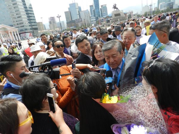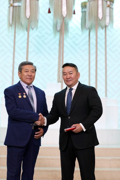Түүнийг Монгол Улсын Ерөнхийлөгчөөс Ардын жүжигчин цол тэмдэг аваад гарч ирэхэд нь баярын сэтгэгдлийн сонслоо.