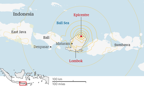 АНУ -ын геологийн судалгааны хүрээлэнгээс газар хөдлөлтийн голомт Ломбокоос хойд хэсэгт Матарам хотоос зүүн хойд хэсгээс 50 км-т үүссэн гэв. Арлын захиргаанаас хүмүүсийг нүүлгэн шилжүүлэх болон эрэн хайх, аврах ажиллагааг явуулж байна.