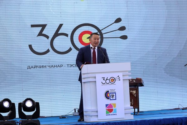Монгол Улсын Ерөнхийлөгч Х.Баттулга Үндэсний цэцэрлэгт хүрээлэнд өчигдөр  нээлтээ хийж буй байт харвааны “360” талбайн нээлтийн ёслолд оролцож, үг хэллээ.
