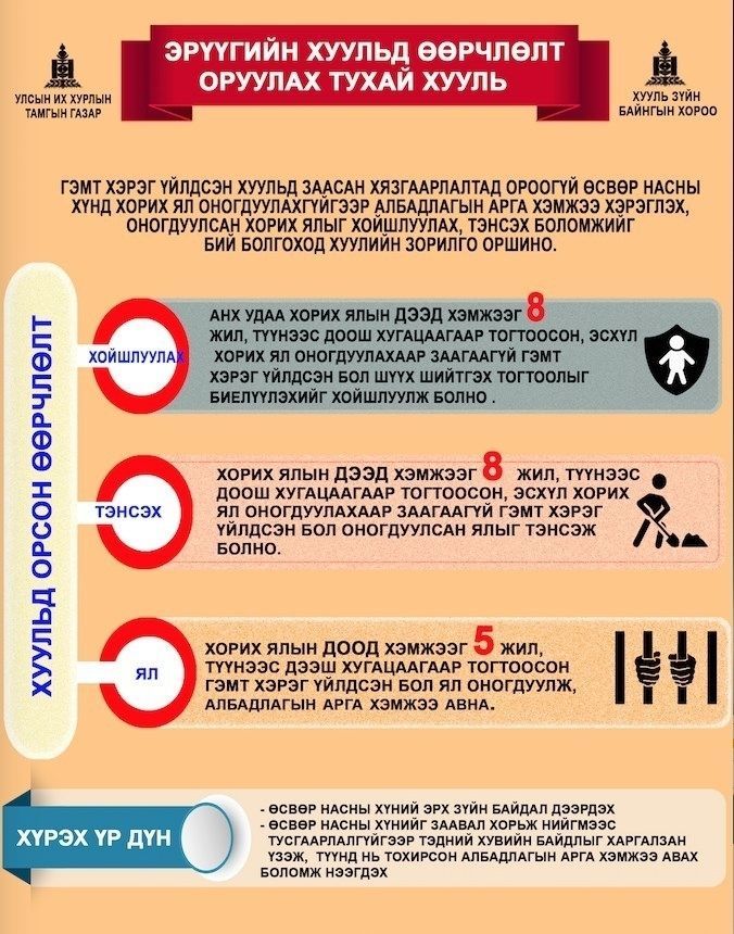 Долдугаар сарын 5-наас мөрдөгдөж байгаа эрүүгийн хуульд орсон өөрчлөлтүүд