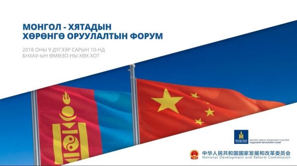 Монгол Улсын Засгийн газрын тохируулагч агентлаг Үндэсний Хөгжлийн Газар, Бүгд Найрамдах Хятад Ард Улсын Өвөр Монголын Өөртөө Засах Орны Үндэсний хөгжил, шинэчлэлийн хороо хамтран хоёр орны хөрөнгө оруулалтын хамтын ажиллагааг өргөжүүлэх, бүс нутгийн шинжтэй хөрөнгө оруулалтын томоохон төсөл, хөтөлбөрийг хамтран хэрэгжүүлэх, тэдгээрийг БНХАУ-ын бизнес эрхлэгч, хөрөнгө оруулагчдад таниулан сурталчлах, бизнес эрхлэгчдийг шууд харилцаа холбоо тогтооход нь дэмжлэг үзүүлэх зорилгоор 2018 оны 9 дүгээр сарын 10-ны өдөр “Монгол-Хятадын Хөрөнгө Оруулалтын Форум”-ыг БНХАУ-ын ӨМӨЗО-ны Хөх хотноо зохион байгуулах гэж байна.