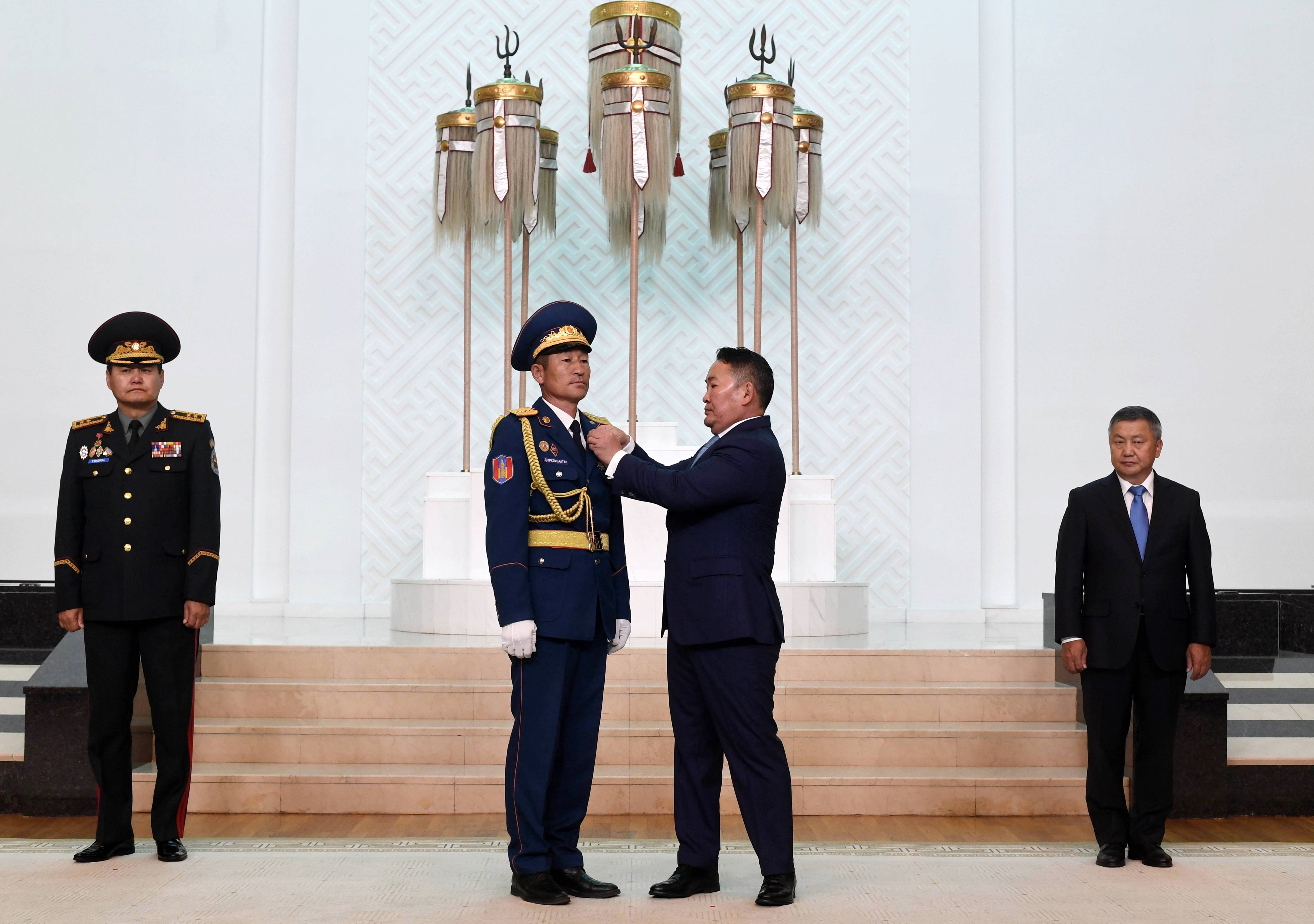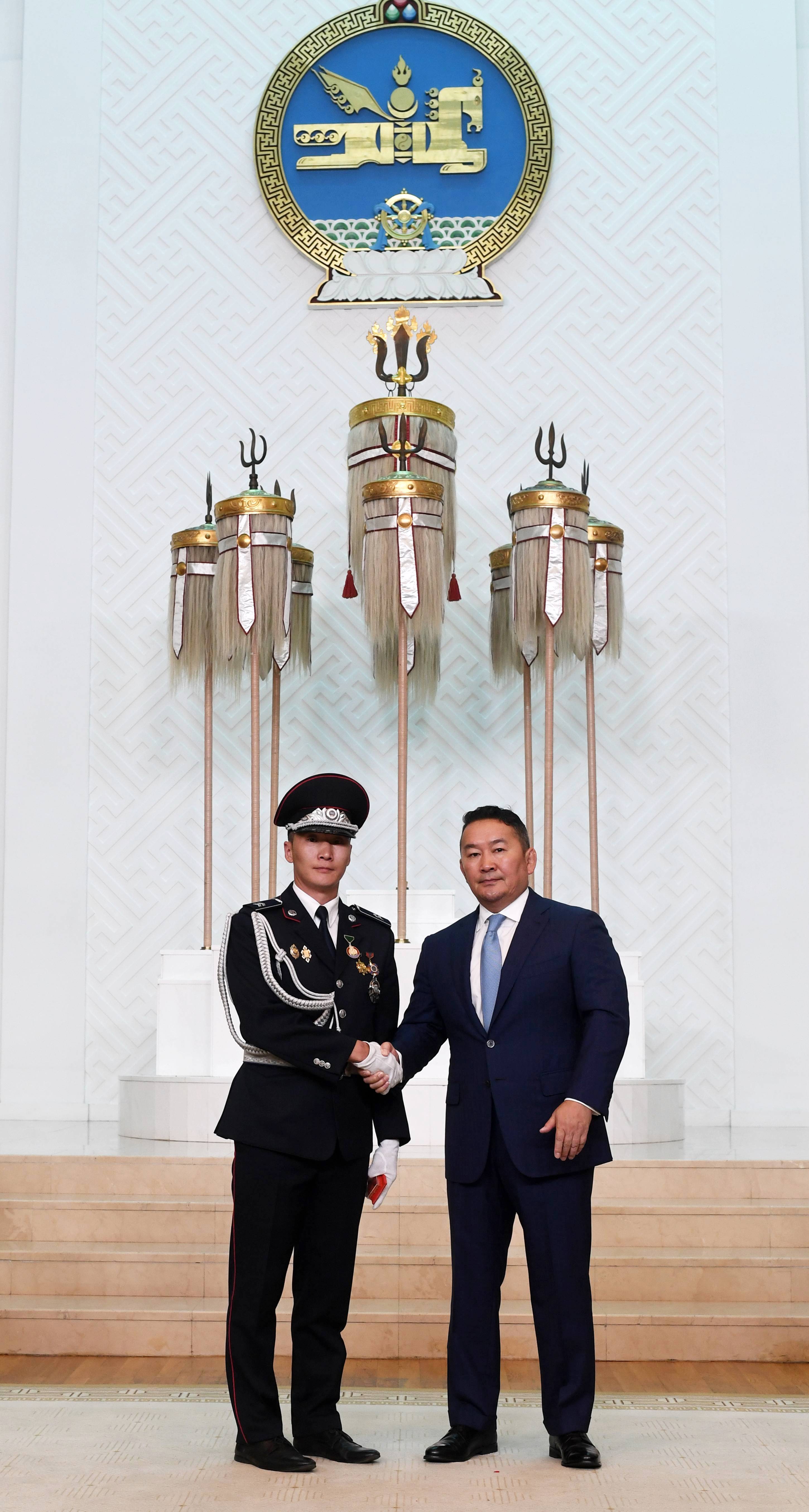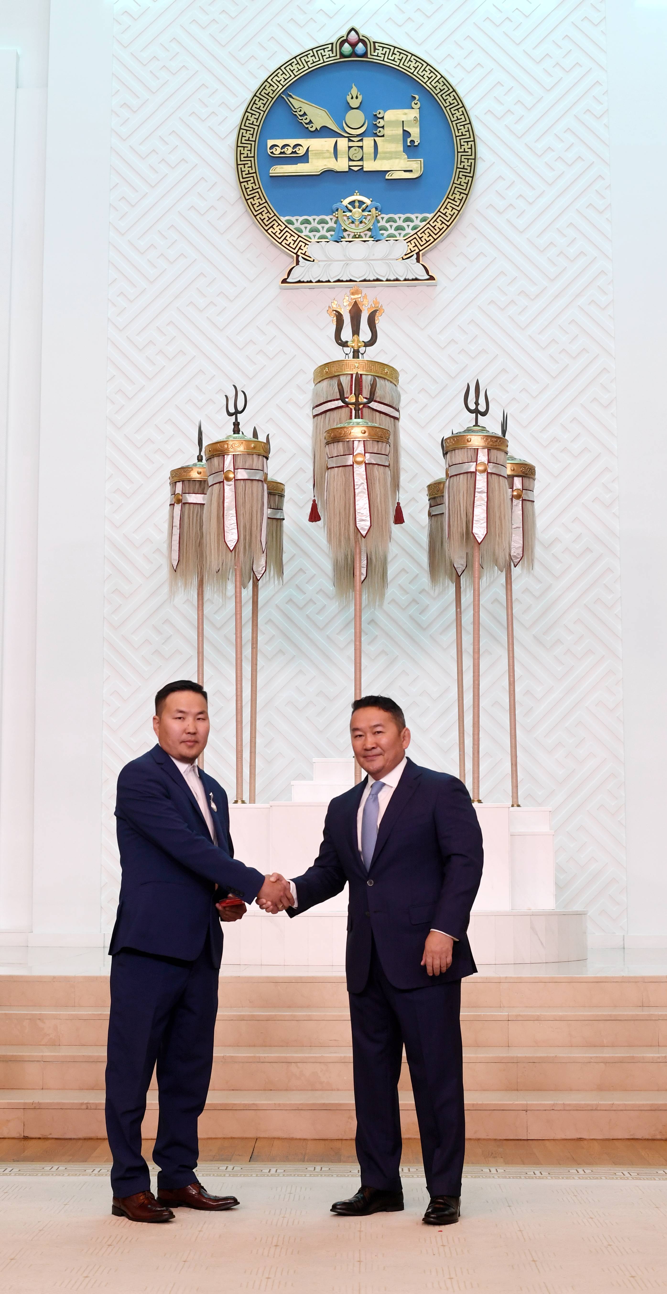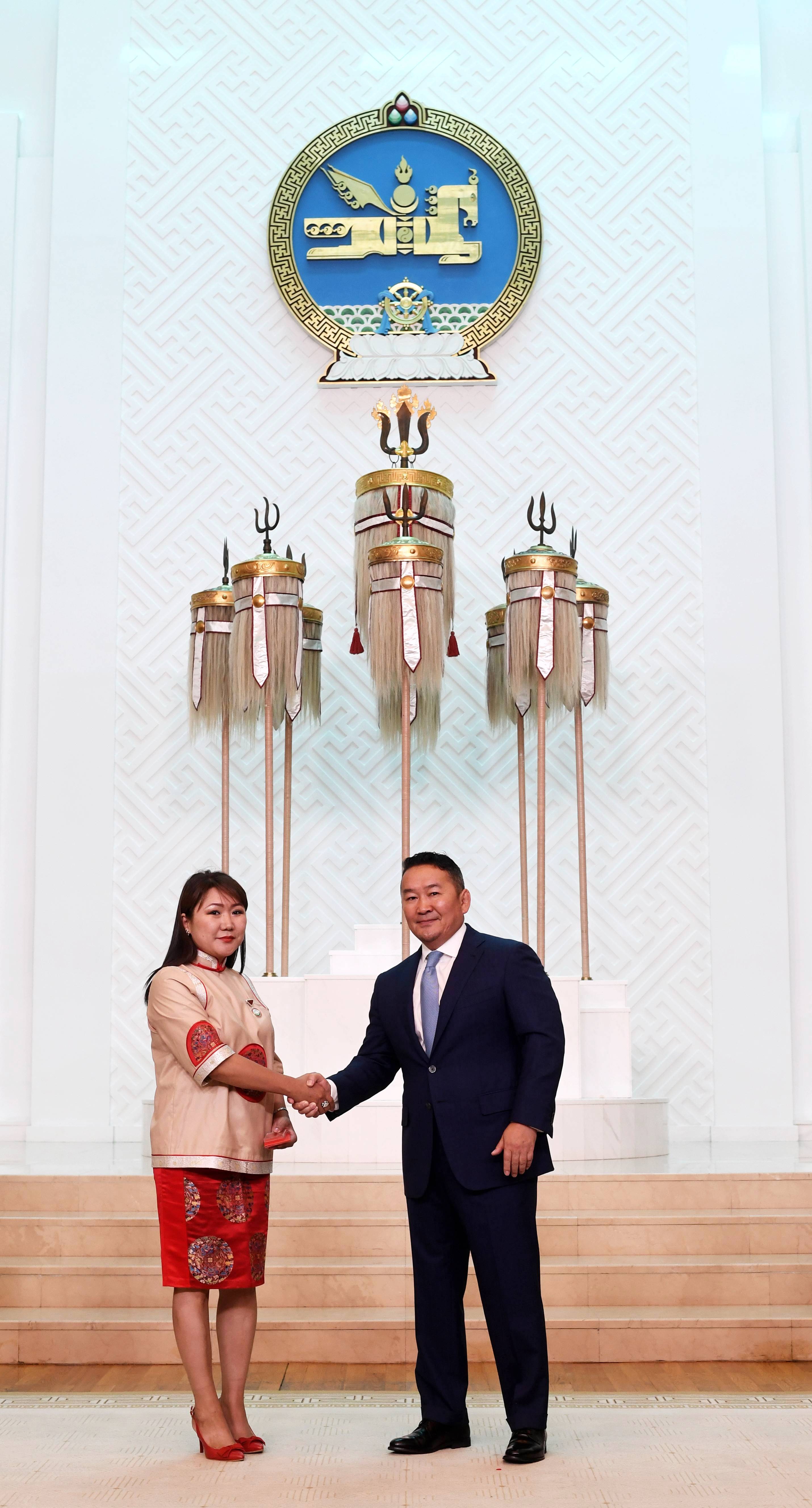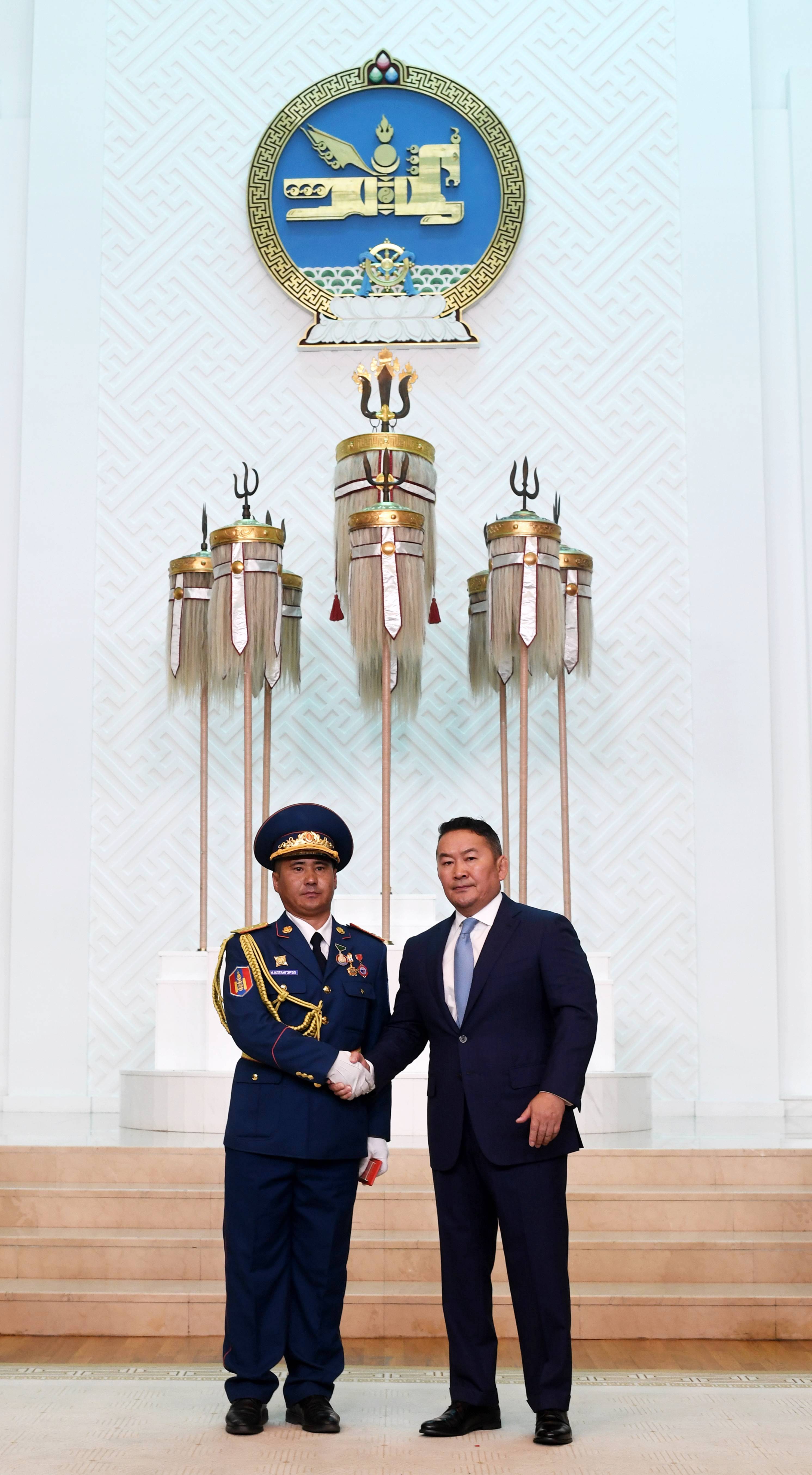 Монгол Улсын Ерөнхийлөгчийн зарлигийг өнөөдөр Төрийн есөн хөлт, цагаан тугт танхимд уншиж сонордуулан, Төрийн одон медалийг Монгол Улсын Ерөнхийлөгч Х.Баттулга гардуулав.