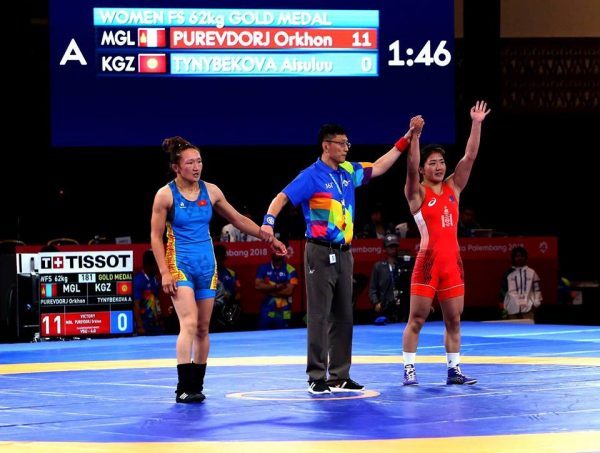 “Жакарта-2018” Азийн зуны спортын XVIII наадмын чөлөөт бөхийн эмэгтэйчүүдийн 62 кг-ын жинд Монгол Улсын гавьяат тамирчин Пүрэвдоржийн Орхон хүчтэй өрсөлдөгчөө илүүрхэн ялж, алтан медалийн эзэн болсон. Ингэснээр тэрбээр Азийн наадамд түрүүлсэн манай улсын хоёр дахь эмэгтэй тамирчин болсон юм.