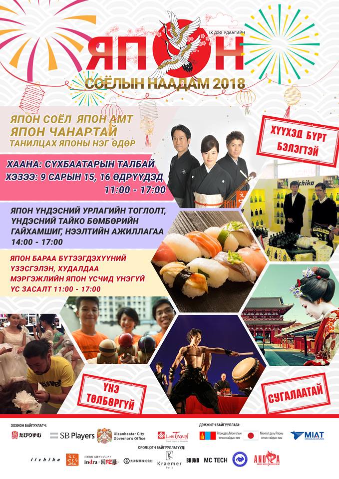 Нэн ялангуяа хоёр орны ард иргэдийн найрамдалт харилцаа бэхжин соёлын хамтын ажиллагаа өргөжиж байгаа билээ. Үүний тод илрэл бол Монголын ард иргэдэд Японы соёлыг түгээх 9 дэх удаагийн “Япон соёлын наадам 2018” арга хэмжээ юм.