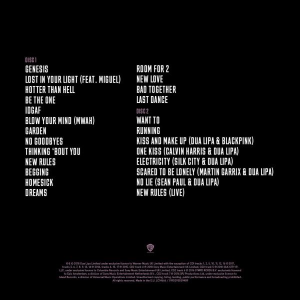 Тэрбээр твиттертээ 25 дуунаас бүрдсэн цомгоо танилцуулжээ. Дууны жагсаалтад Dua Lipa BlackPink хамтлагтай хамтарсан ‘’Kiss and Make up’’ нэртэй нэг дуу багтсан аж: